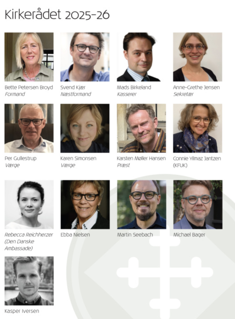 Se datoer for kommende kirkerådsmøder i kalenderen.